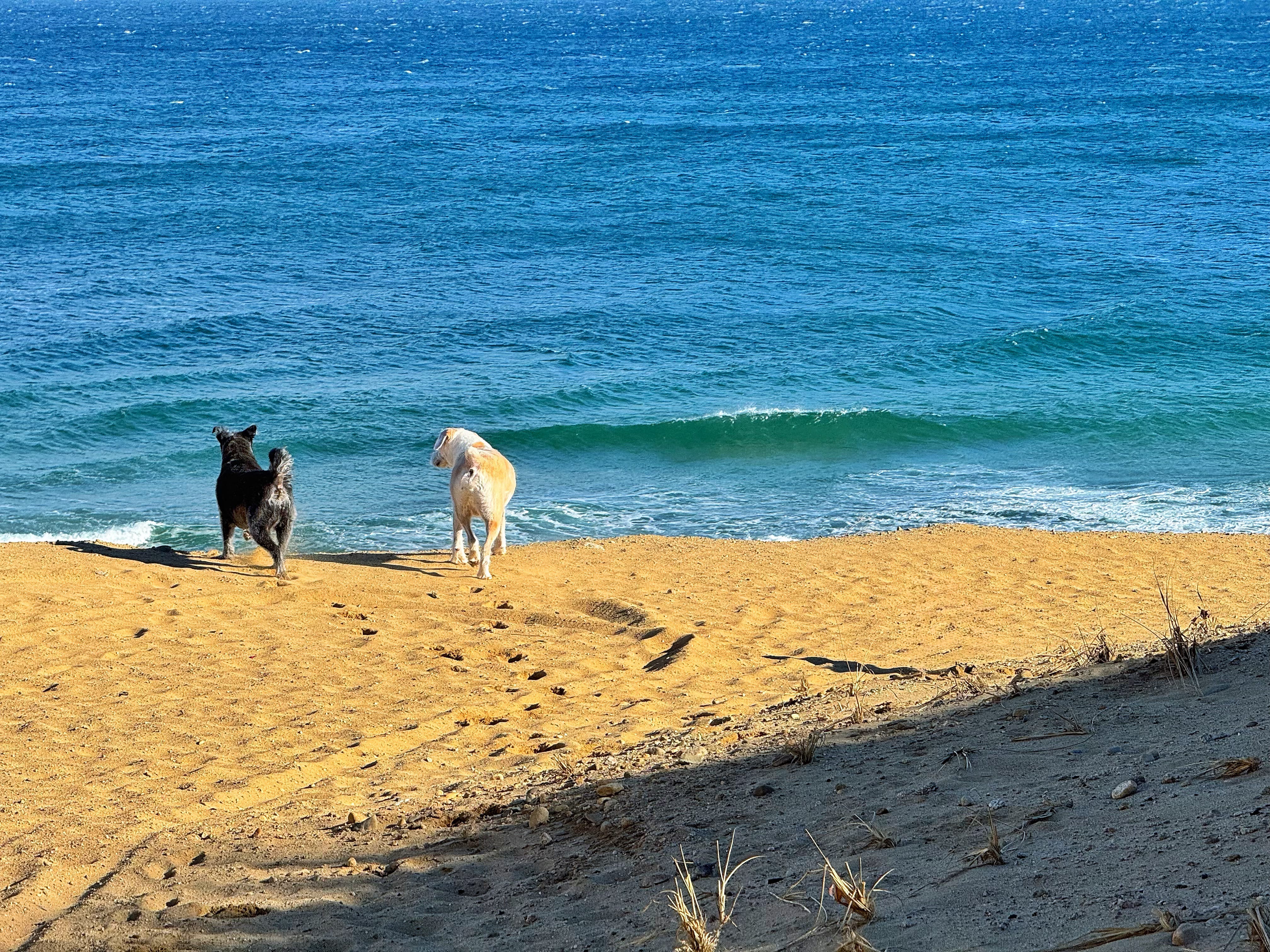 We drove the 2.2 miles to the ocean side to walk Longnook Beach for the first time. It’s a stunning area. The beach had been closed since there was no way to reach it after much erosion. But thanks to the efforts of the folks at the Cape Cod National Seashore, an enormous dirt ramp was built for access.